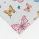 Este design de cobertor de velo bonito e caprichoso, com hábitos, apresenta um padrão de borboletas rosa, com borboletas e flores coloridas. Também há espaço para você adicionar seu nome de meninas e monograma em uma bela fonte. O presente mágico perfeito para qualquer amante de borboletas.