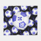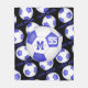 Este cobertor esportivo de futebol apresenta a imagem realista de uma bola de futebol de tamanho excessivo que tem painéis azuis e brancos sobre os quais seu nome, monograma e número de camisa podem ser personalizados, sobrepondo-se a um padrão de bolas de futebol azuis e brancas menores e ao texto de fonte esportiva "I LOVE SOCCER" que se estende entre as linhas angulares das bolas de futebol - o fundo é preto personalizável - por katz_d_zynes