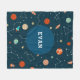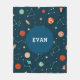 Este cobertor de velo legal espaçado no exterior é principalmente do esquema de cor azul-marinho. Sua design apresenta foguetes coloridos, planetas, estrelas e constelações. Também vem com um nome que é personalizável. Este item está pronto para ser personalizado. Emparelhe este cobertor de velo com outros itens semelhantes de decoração de sala para crianças desenhadas nesta coleção. Para mais, visite a loja.