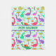 Dinossauros bonitos fundo verde Pastel geral personalizado. Teste padrão brilhante, colorido dos dinossauros nas máscaras de roxo, de verde, de vermelho, e o marrom. É centrado o nome verde, personalizado em combinar a tira verde pálido com as beiras roxas. Decoração bonito do berçário do dinossauro, presente do chá de fraldas para o bebé, ou sala dos meninos do tema dos animais. Nós temos a DECORAÇÃO de HARMONIZAÇÃO do DINOSSAURO dos MIÚDOS, assim como uma decoração mais original dos miúdos em nossa loja de Zazzle.com/angela65.
