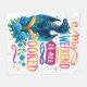 Design vibrante e colorido com um dragão com um livro aberto e rosas azuis. O texto colorido diz: "Meu fim de semana está todo reservado". Esse design está disponível em uma grande variedade de produtos.