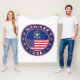 Crachá de Michigan com bandeira de Michigan e bandeira dos EUA. Cores, forma arredondada. Emblema de Michigan. Selo de Michigan. Coleção dos Estados Unidos.