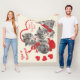 Celebrate the season with this adorable mid-century vintage fleece blanket that features two playful kittens wearing red bows alongside a red heart that says "Happy Valentine's Day!" and the words "You're Purrrfect" in the corner with heart accents.