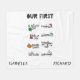 Um cobertor de bebês elegante e moderno, perfeito para tirar fotos de seus gêmeos bebês em seus primeiros feriados importantes. Este cobertor contém a menção "Our First" no topo, em letras negras. No meio do cobertor, há 8 das principais festas, cada uma com um ícone colorido divertido (rua. Dia do Patrick com um trevo de quatro folhas, 4 de julho com um chapéu de "estrelas e listras", Ação de Graças com uma abóbora, Páscoa com orelhas bonitinhas, Natal com Papais noeis, Aniversário com um belo bolo, Dia de os namorados com seta e coração, e Halloween um fantasma divertido). Pode ser personalizado com os nomes do bebê em uma fonte preta manuscrita. Presente perfeito para chás de fraldas ou recém-nascidos e novos pais.