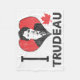 Mim coração Trudeau. Eu amo Justin Trudeau. Com uma folha de bordo canadense vermelha. Ministro liberal de Canadá o primeiro. A cara de Justin feita como uma ilustração gráfica e terminada em um grunge, olhar afligido.