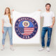 Crachá de Minnesota com bandeira de Minnesota e bandeira dos EUA cores, forma arredondada. Emblema de Minnesota. Selo de Minnesota. Coleção dos Estados Unidos.