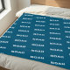 Make your own blanket with a custom name in modern minimalist typography repeating pattern on blue color background. A great gift idea for family and friends or personalized home or bedroom decor.
