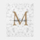 Modern Marble Gold Girly Script Monogram Fleece Blanket