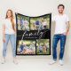 This personalized modern keepsake fleece blanket features 4 custom photos with the word “family” in elegant handwritten calligraphy script. The black background can be changed to your own custom color.