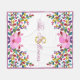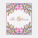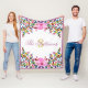 Boho Fleece Blanket com monograma floral/foliar. Ramo branco с oloroso com flores roxas, azuis, cor-de-rosa, ouros, folhas verdes e hibiscos cor-de-rosa. Monograma do ouro + nome púrpura. Fronteira roxa. Um presente personalizado de excelente.