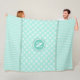 Este belo cobertor de velo é verde-menta e listras brancas no topo e no fundo e verde-menta com margaridas brancas na seção do meio. As seções são separadas por uma fita grossa com uma fita ricraca no meio. Você pode personalizá-lo com o início do seu sobrenome usando o link "Personalizar este modelo". Imagine-se enrolada, vendo seu filme favorito com este cobertor de velo confortável envolto em você!