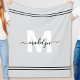 Cinza Personalizada e Bolsa de Folha de Monograma Branco. Adicione um toque divertido e na moda ao seu dormitório, à sua casa de repouso, ou a qualquer espaço com este cobertor de velo personalizado. Apresentando um fundo de cinza suave, o design exibe uma inicial branca nítida, emparelhada com um nome de script preto fluente para um visual chic e moderno. O cobertor é acentuado com detalhes de faixa preta em cada extremidade, adicionando um contraste agradável ao design aconchegante. Totalmente personalizável, todas as cores podem ser ajustadas para se adequarem ao seu estilo pessoal e ao seu espaço. Perfeito como um presente pensativo para decoração do dormitório, esquartejamentos, aniversários, ou qualquer ocasião especial, este monograma de cobertor de velo combina estilo, calor e praticidade para criar um complemento à sua casa.