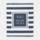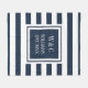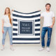 Cobertor de monograma de iniciais personalizadas elegante e moderno com um padrão listrado azul marinho e branco com suas iniciais e nome da família, juntamente com a data estabelecida, definido em um quadrado com borda azul marinho e texto branco clássico. Criado por Thisisnotme©