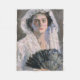 Esta design apresenta uma pintura do artista japonês Fujishima Takeji (1867-1943), que é notado por seu trabalho dentro de uma tradição de impressionismo ao estilo ocidental. Mostra uma senhora vestindo uma roupa branca elegante com um véu. Ela está segurando um fã preto em sua mão. A mulher está encarando a pintura com inteligência e confiança. É uma bela evocação da feminilidade. A arte original foi produzida em 1909.