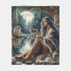 Na borda da água tranquila, uma índia nativa se senta graciosamente, vestida em roupas tradicionais, à medida que dois lobos majestosos ficam atentos. A lua de cheio lança um brilho suave, iluminando a natureza serena ao seu redor.