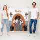 Esta design apresenta uma beleza afro-americana curvada com jaqueta branca e vestimenta de cinza numa parede colorida de terracota com plantas e fundo branco