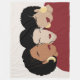 Este design apresenta mulheres negras de diferentes tons, cabeça a cabeça, apoiando-se mutuamente.