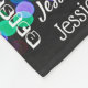 A foto conhecida personalizada do fundo do tema do feriado da cobertura do Natal da arte do metro do bokeh brilhante, colorido do Natal ilumina-se no verde azul, alaranjado, vermelho, roxo, e da cerceta no fundo preto. Por todo o lado no impressão da tipografia do nome personalizado em diversos estilos brancos diferentes da rotulação. Presente bonito do chá de fraldas do Natal ou presente do Natal para uma menina adolescente.