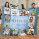 Um cobertor de fotos personalizado azul com uma citação de netos adorável. O modelo de foto está pronto para você adicionar 12 de suas fotos favoritas, que são exibidas como uma fronteira ao redor dos avós. O texto diz "Netos fazem a vida grandiosa" em letras-manuscritas, irk maiúsculos, e elegante tipografia da escrita. O design tem um fundo moderno e na moda em tons de azul. Um presente adorável para os avós dos seus netos - ou vice-versa.