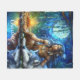 Cobertor De Velo Noite tranquila por rio com nativo e lobo