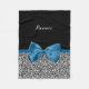 Personalize adicionando o nome de sua adolescente a este cobertor de padrão de impressão preto e branco preto-e-branco de padrão-leopardo com uma fita azul de cobalto na moda clássica amarrada em um arco giro. Imagem impressa em formato plano, não faixa real.