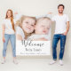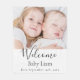 Personalize e adicione sua própria foto do seu bebê recém-nascido. Personalize e adicione um nome e data de nascimento. Com a palavra: Bem-vindo escrito com um grande script de estilo escrito à mão. Perfeito para o berçário ou como presentes para pais e avós.