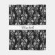 cobertor preto de velo acolchoado com um elegante design romântico de linhas florais brancas e desenho peronalizado de nome impressão em uma fita branca no centro do cobertor.