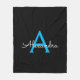 Cobertor de Fleece Monograma Azul e Preto com Nome Personalizado. Isso torna o presente perfeito para aniversário de 16 anos, casamento, chá de panela, aniversário de casamento, chá de bebê ou despedida de solteira para alguém que ama glamour luxuoso e estilos chiques.