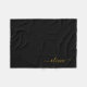 Cobertor de Fleece com Nome Monograma Preto e Dourado. Isso torna o presente perfeito para aniversário de 16 anos, casamento, chá de noiva, aniversário de casamento, chá de bebê ou festa de despedida de solteira para alguém que ama luxo e estilos chiques.