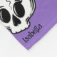 Cobertura de Halloween personalizada com um crânio vestindo um arco roxo fofo. Personalize-o com um nome ou qualquer texto assustador que você quiser.
