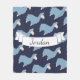Um padrão azul bonito de lhamas sobre um fundo azul escuro com seu nome personalizado em roteiro de cinza.