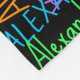 Fundo preto com arco-íris primário brilhante neon de cores incríveis azul-alaranjado vermelho e roxo com padrão de nome repetitivo legal. Coloque o nome do bebê ou do garoto sobre esta colorida criação da tipografia criativa. Um sortido vibrante de fontes com nome próprio ou palavra escolhida repetido por todo o lado. Celebre qualquer ocasião com um cobertor personalizado de presente de colagem de nome personalizado, perfeito para o aniversário de uma criança, ideia de presente de Natal personalizado ou para celebrar um novo bebê!