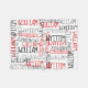 Antecedentes brancos com preto e vermelho vibrante, combinação clássica de preto e branco apela aos rapazes mais velhos ou estética moderna. Padrão de nome repetitivo legal. Coloque o nome do garoto sobre essa colorida criação da tipografia criativa. Um sortido vibrante de fontes com nome próprio ou palavra escolhida repetido por todo o lado. Celebre qualquer ocasião com um cobertor personalizado de presente de colagem de nome personalizado, perfeito para o aniversário de uma criança, ideia de presente de Natal personalizado ou para celebrar um novo bebê!