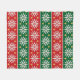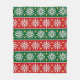 Scandinavian-inspired faux-knit pattern of snowflakes, diamonds, and festive stripes in red, green, white, and gold.