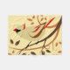 Arte de aves estilizada de um cardeal Norte fêmea empoleirado em galhos decorativos de espiral e cercado por folhas em cores de outono