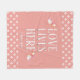 O AMOR VIVE AQUI, O Blanket cor-de-rosa com TEXTO PERSONALIZÁVEL. Folheto de Folha, na moda, moderno, projetado com LOVE LIVES AQUI em tipografia branca e referência de Escritura PERSONALIZÁVEL que você pode personalizar adicionando seu nome (família). 1 John 4:16 diz "Deus é o amor, e aquele que se apaixona por Deus, e Deus nele." Esquema de cores femininas de PINK e WHITE, com gráficos de coração duplo opcionais, que você pode excluir se desejar. Cobertura correspondente e outras cores disponíveis.