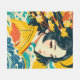 Este retrato aproximado de uma menina vietnamita captura o espírito do país em suas cores vibrantes e linhas ousadas. O rosto da menina é renderizado em cores primárias, com realces brancos para criar uma sensação de profundidade e dimensão. O cabelo dela é soprado pelo vento