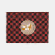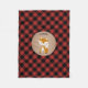 Uma cobertura do velo que caracteriza uma ilustração de uma raposa. O fundo é xadrez preta e vermelha do búfalo. Personalize o nome.