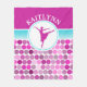 A cobertura " retro" do velo do dançarino do design que caracteriza "distante para fora" um roxo anca circunda o fundo. Um toque da cerceta dá a isto uma impressão feminino. Adicione seu próprio nome antes de pedir! Adicionalmente, use "personalizam-no" botão para mais opções, incluindo uma pia batismal diferente! ©gollygirls.com