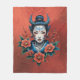 O segredo da beleza pálida, a linda garota japonesa. Seu cabelo está preso num pão elegante, dando a sua aparência um toque gracioso. Um ponto vermelho brilhante é pregado na testa, criando um ponto focal. Seu rosto é intricadamente decorado com padrões azuis e vermelhos, enfatizando sua individualidade e talvez também simbolismo cultural. Ela veste um manto na moda azul e branco que combina harmoniosamente com as cores de seus ornamentos.