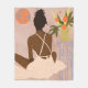 "Olhando para o Abismo" captura uma mulher diante de um vasto vazio negro, contemplando os mistérios além. O sol laranja e o pote floral próximo simbolizam a esperança e a resiliência em meio à incerteza.