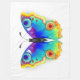 Arco-íris, realista, desenhado artisticamente, borboleta pavão de cores brilhantes com asas detalhadas texturizadas sobre fundo branco. Borboleta-arco-íris.