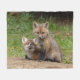 Dois filhotes de raposa vermelha compartilham um momento logo fora de sua toca.