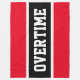 Este design desportivo divertido apresenta um dentro de texto OVERTIME atlético, uma faixa de centro preto, realçada em branco contra um fundo vermelho brilhante. As cores e o texto podem ser personalizados.