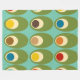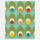 Este cobertor de velo grande tem uma design moderna do século médio de ovais verdes com ovais e círculos neles fazeres que eles se parecem com ovos em cores retrorativas de vermelho, amarelo, azul, verde, marrom e laranja em um campo azul claro.