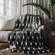 Cobertor De Velo Padrão Art Déco Branco em Fundo Preto