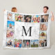 Crie seu próprio cobertor personalizado do velo de colagem de 14 fotos com suas imagens personalizadas e monograma em um fundo na moda elegante de mármore branco.