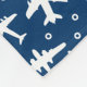 cobertor de temas da aviação com padrão branco e azul marinho.