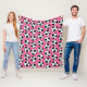 Um cobertor de velo com padrão de bola personalizado para jogadores de futebol usarem quando não estão marcando gols no campo, e para que seus pais apoiem seus filhos e fiquem quentes em jogos frios! Faz um presente de equipe único para torneios de viagem. Design apresenta um padrão de bolas de futebol que são personalizadas com o número uniforme do jogador. Inclui cores rosa quente, preto e branco.