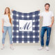 Cobertor De Velo Padrão de Gingham Branco Azul Monograma